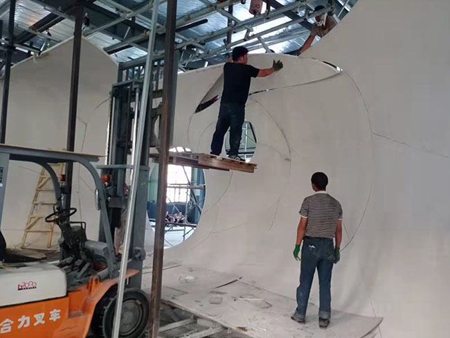 我公司工廠占地面積5000多平方米,公司具有經驗豐富的產品研發(fā)、設計、深化、生產、安裝、管理團隊,可為客戶從裝飾設計、產品深化設計建模、產品生產、現(xiàn)場安裝施工等一整套服務。